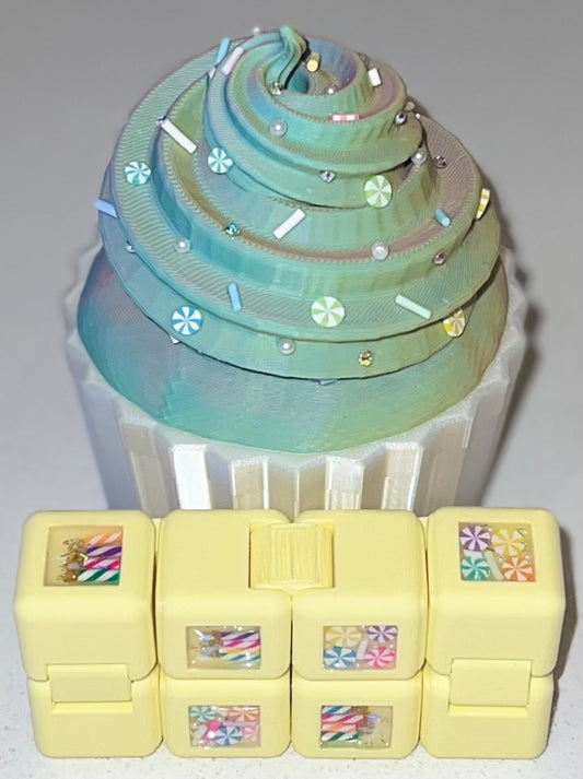 Introducing our enchanting collection of 3D printed cupcakes, infinity cubes and sets—perfect for adding a touch of magic to any birthday celebration. Each cupcake is a unique work of art, meticulously crafted with biodegradable PLA and adorned with delightful details. Whether frosted in classic vanilla or rainbow with extra sprinkles, these treats are designed to captivate the senses.