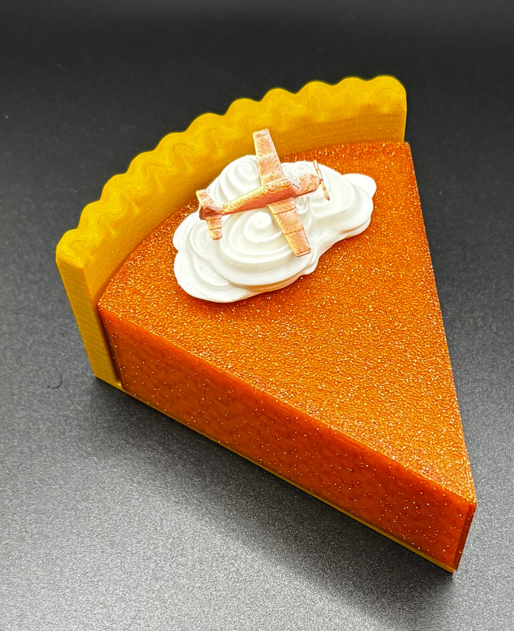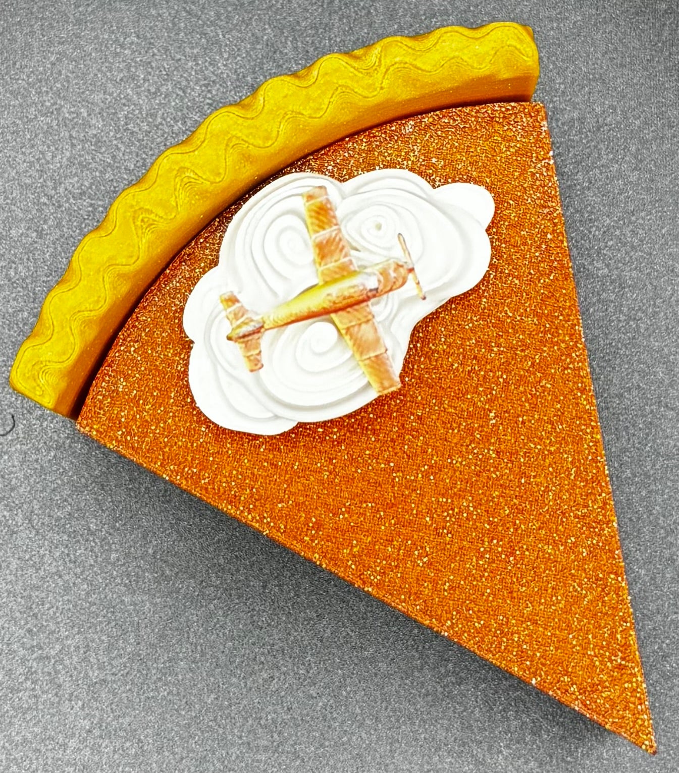 - Design: Realistic pumpkin pie with crust as the base and filling as the lid